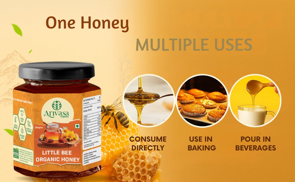 Organic Little Bee Honey | Pure, Natural & NMR Lab - Tested - Arivasa Organics - 100 gms -